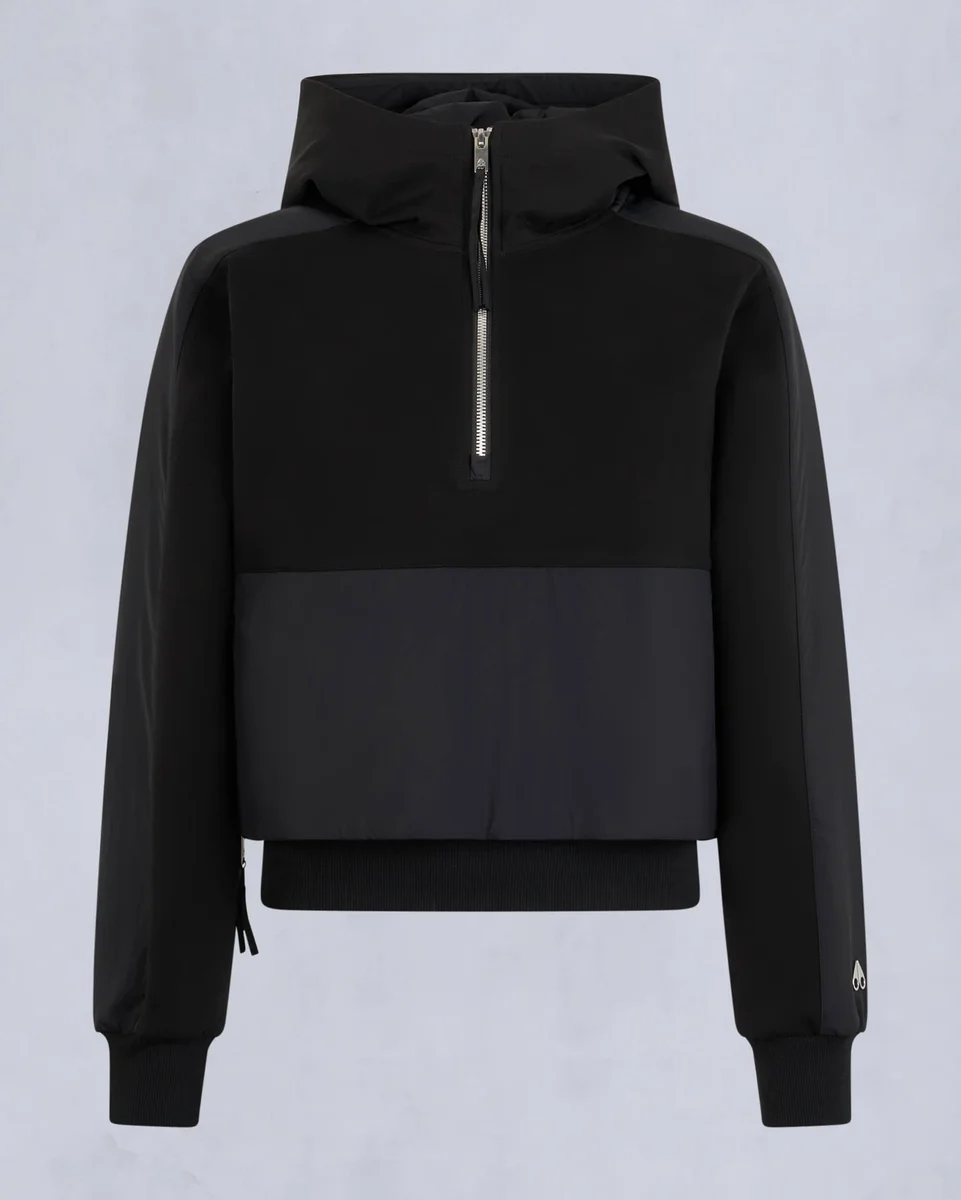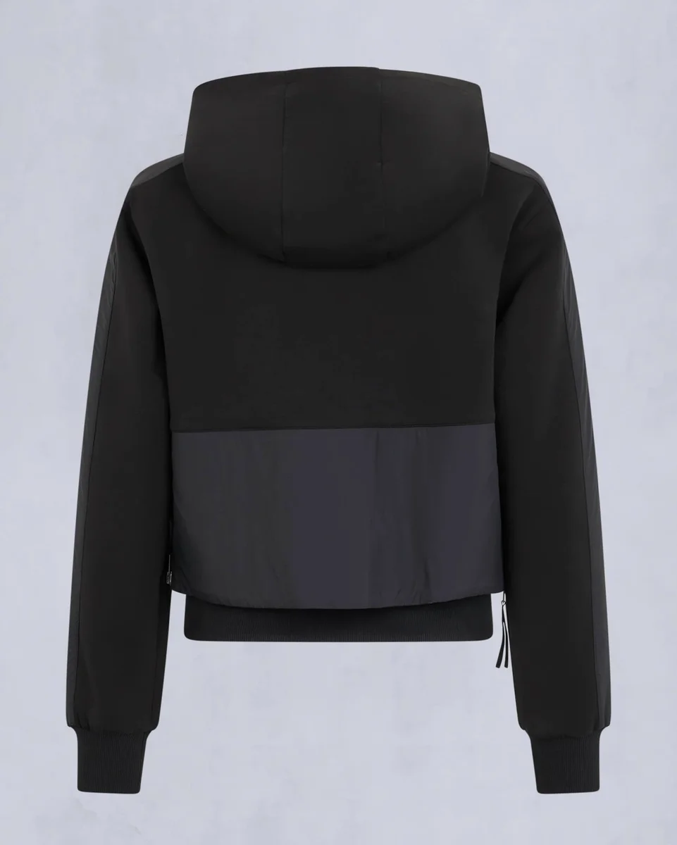 - Apertura con cerniera sulle cuciture laterali e cintura interna e polsini in maglia a costine