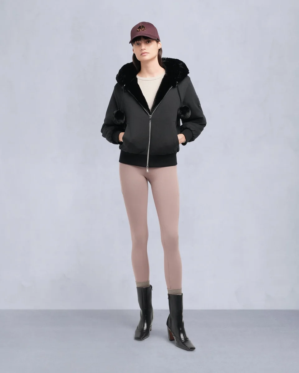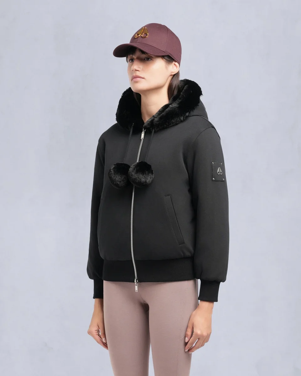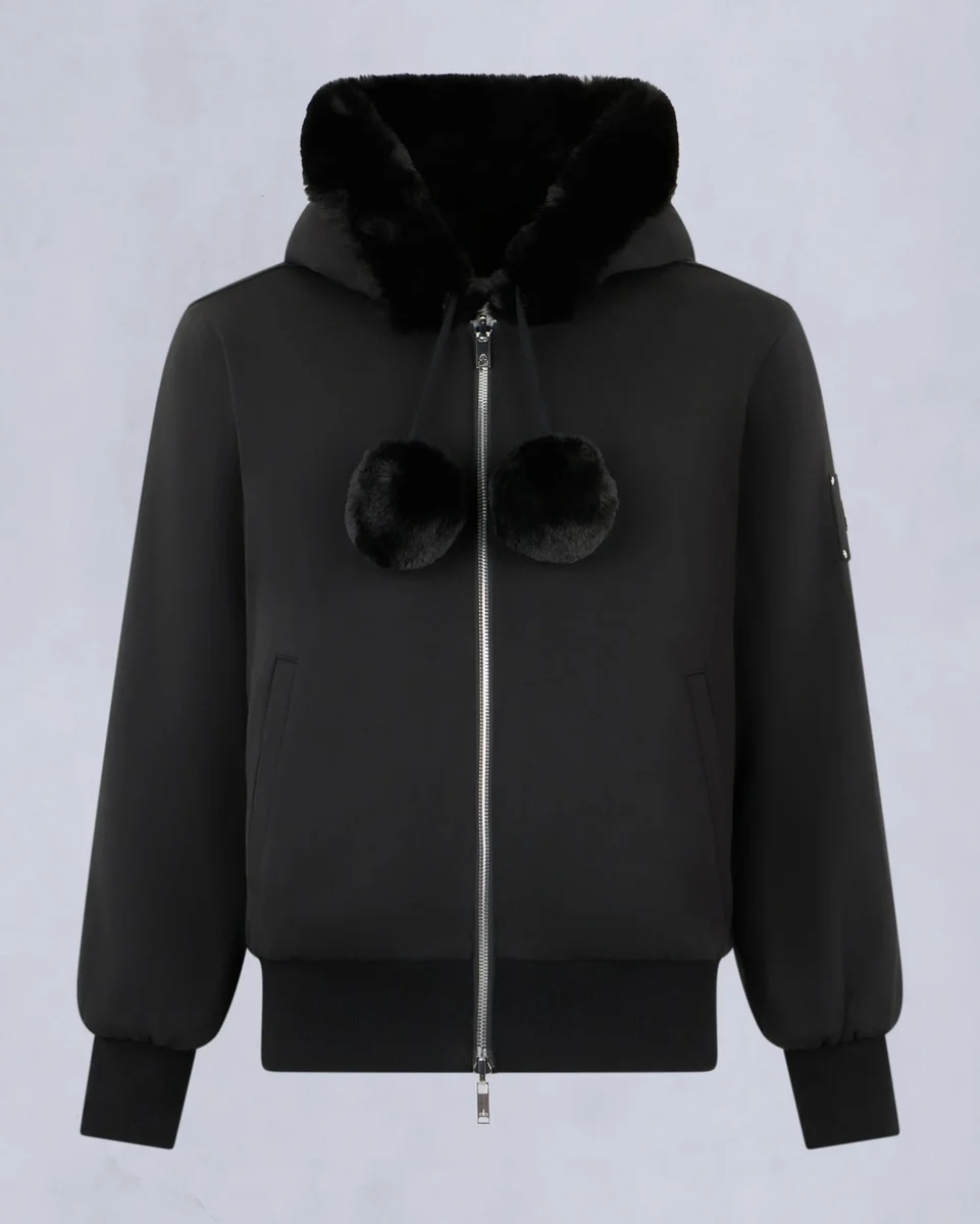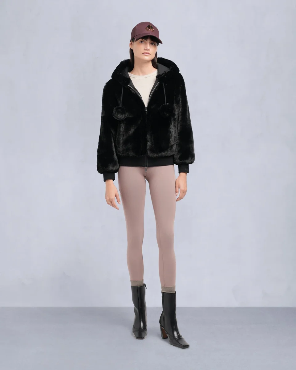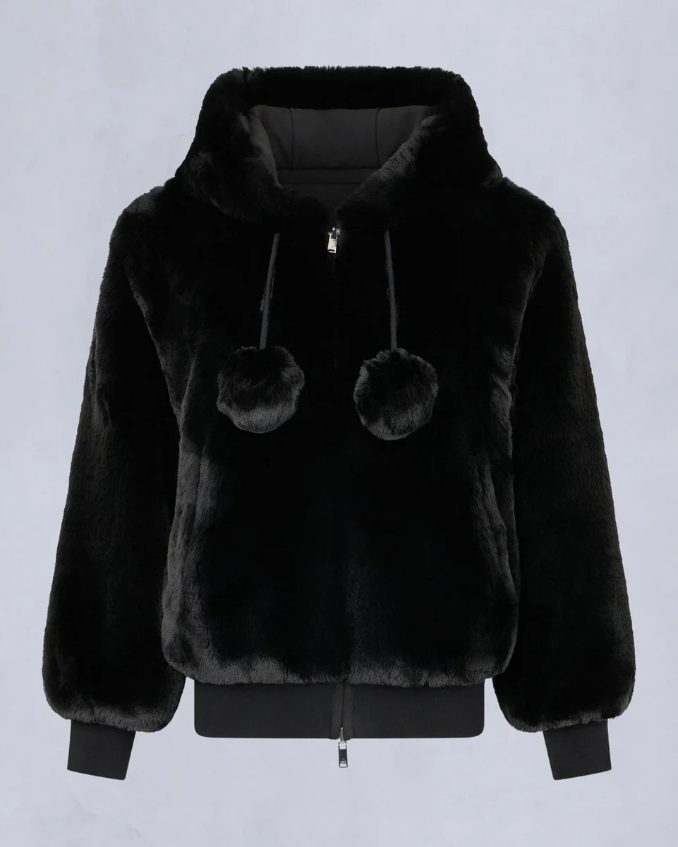 • Cappuccio con pompon in pelliccia sintetica rimovibili