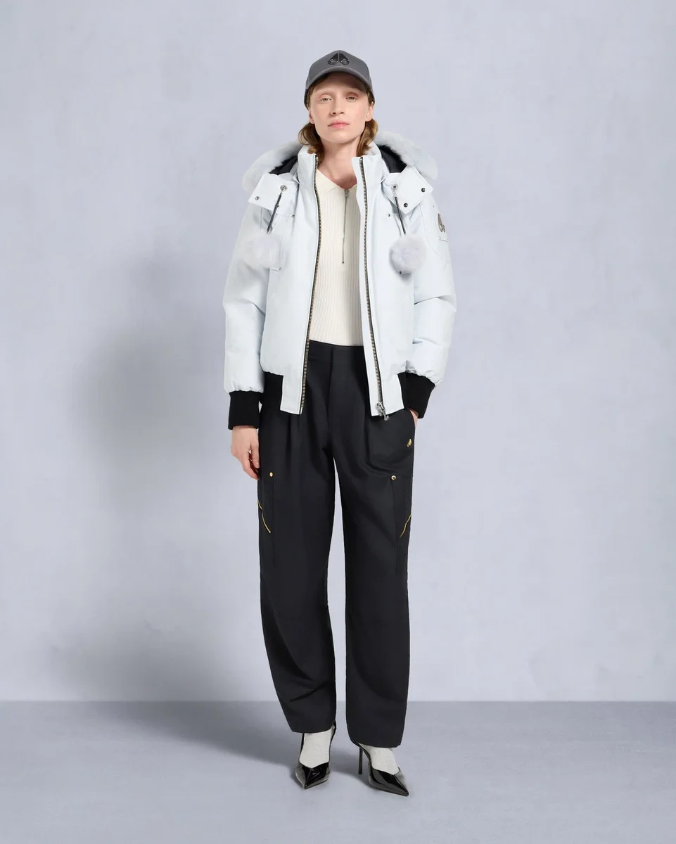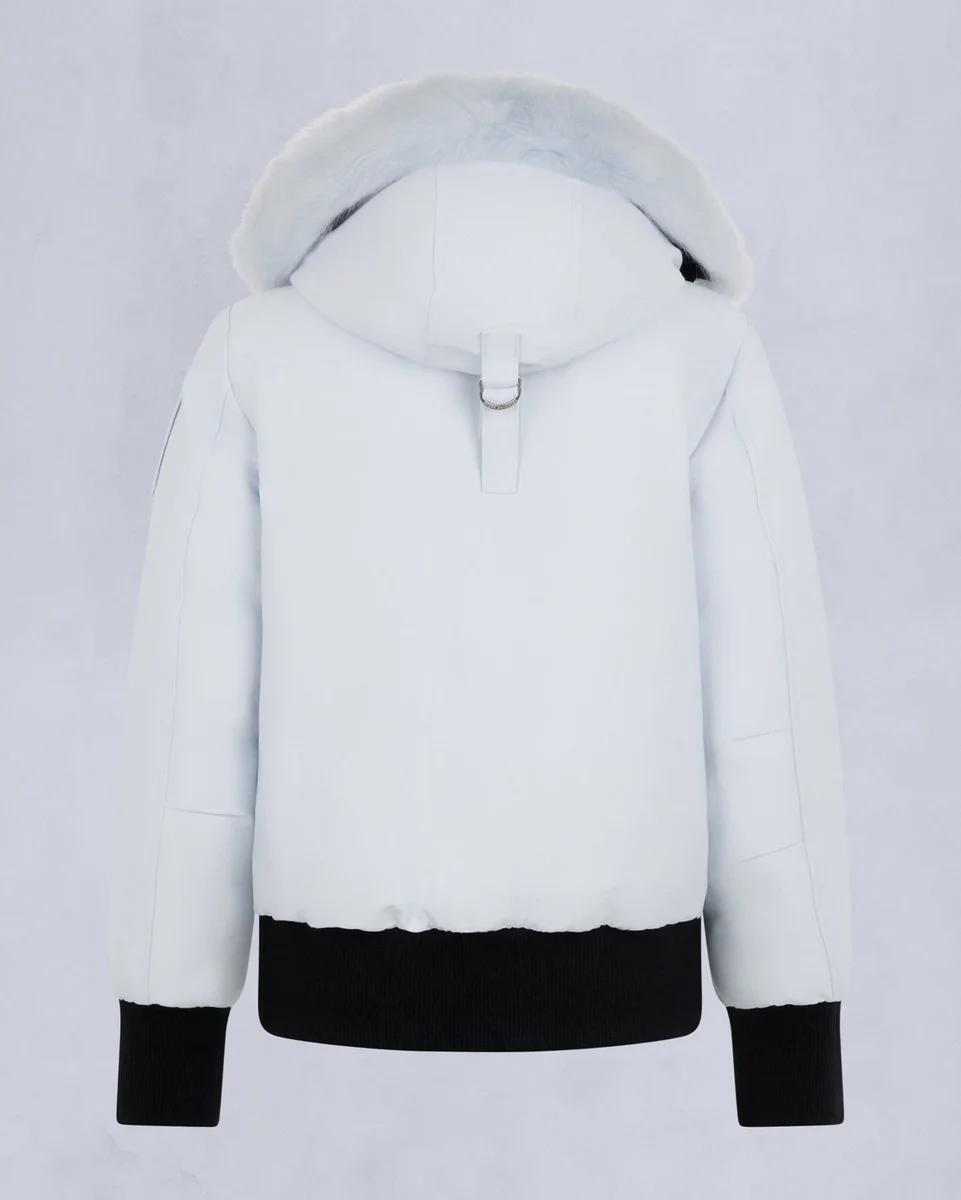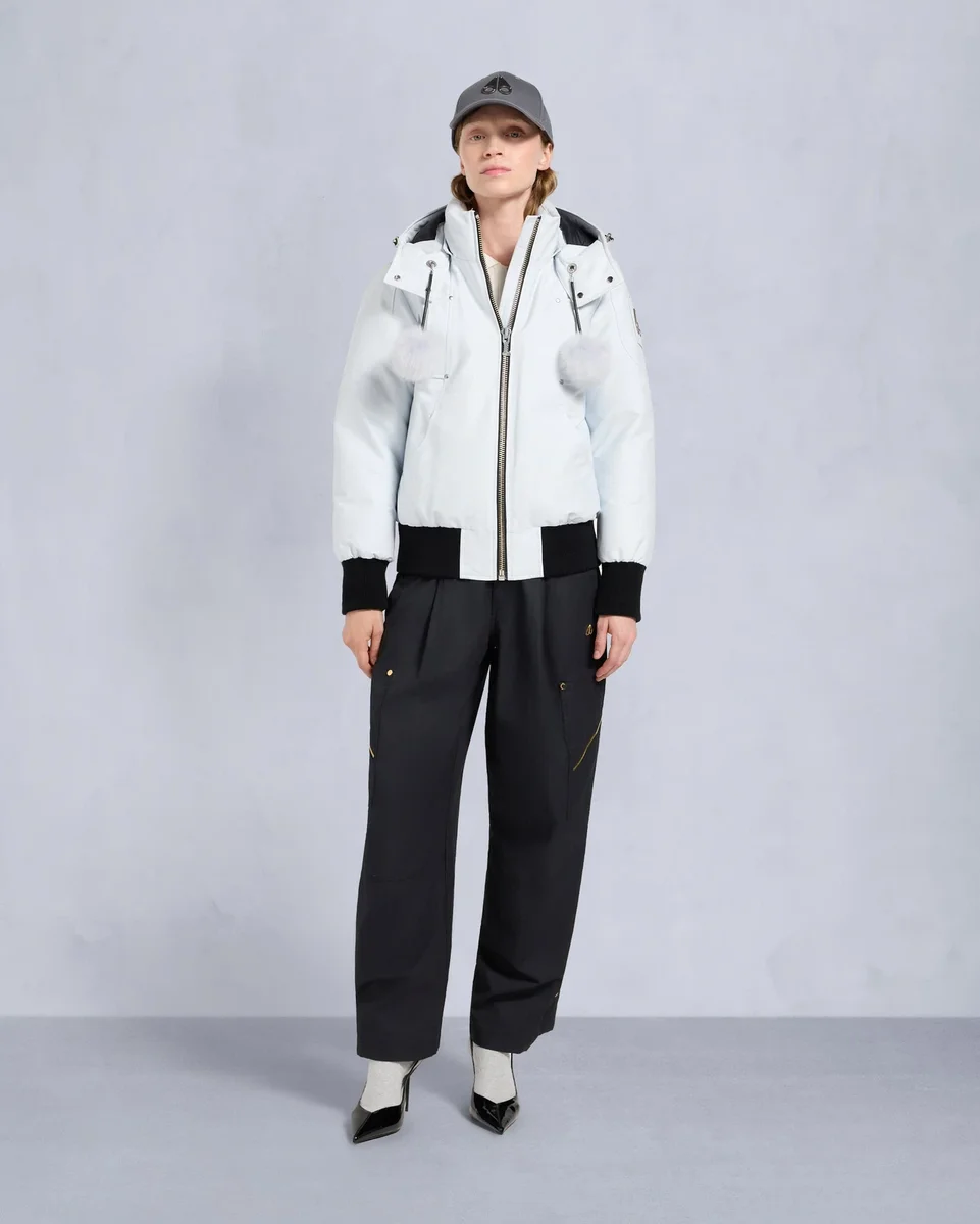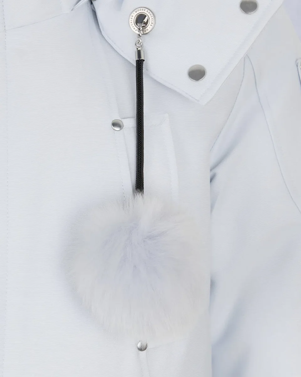 - Cappuccio rimovibile con bordi in shearling e pompon rimovibili