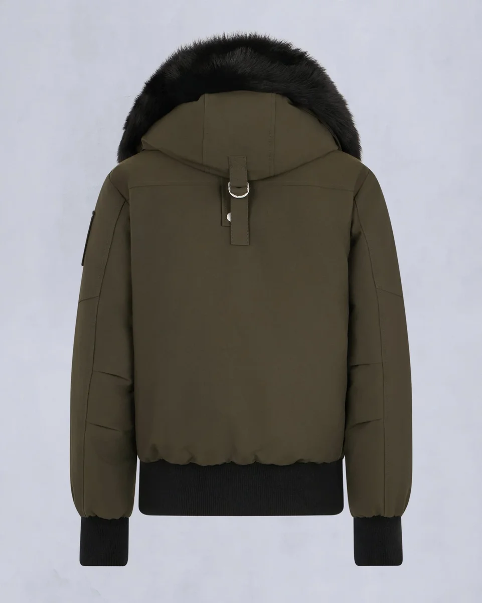 - Cappuccio rimovibile con bordi in shearling e pompon rimovibili