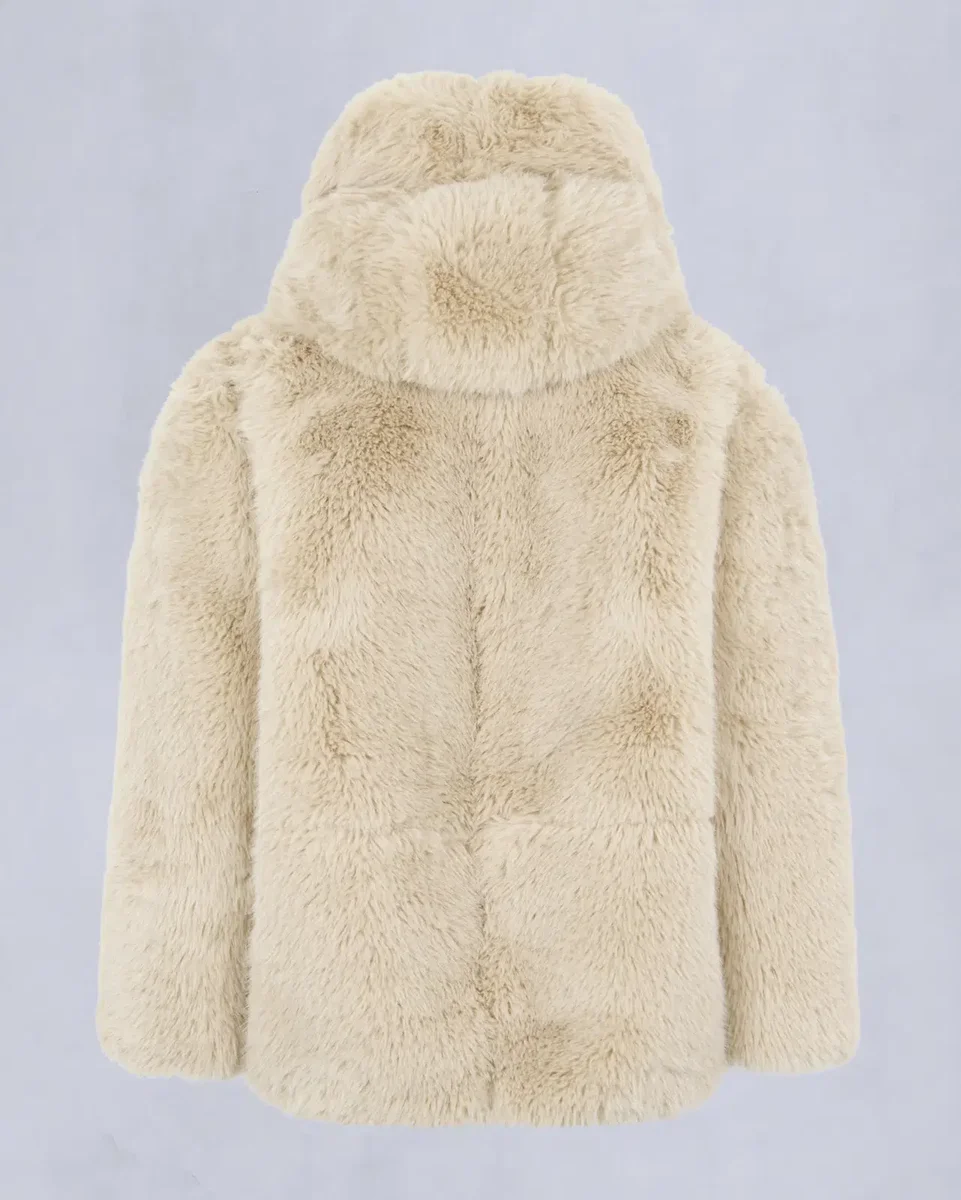 - Cappuccio integrato, pompon in pelliccia sintetica a pelo lungo rimovibili