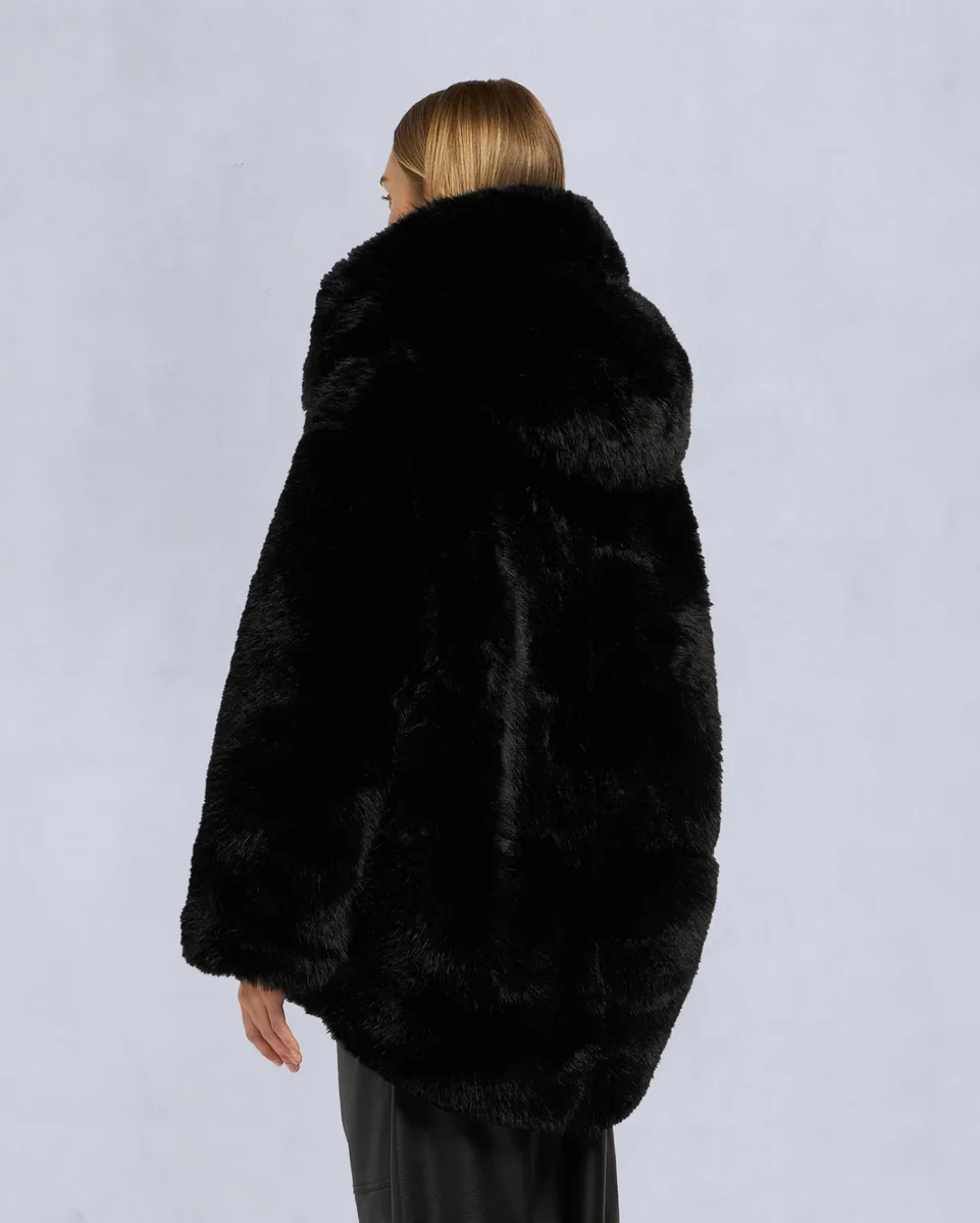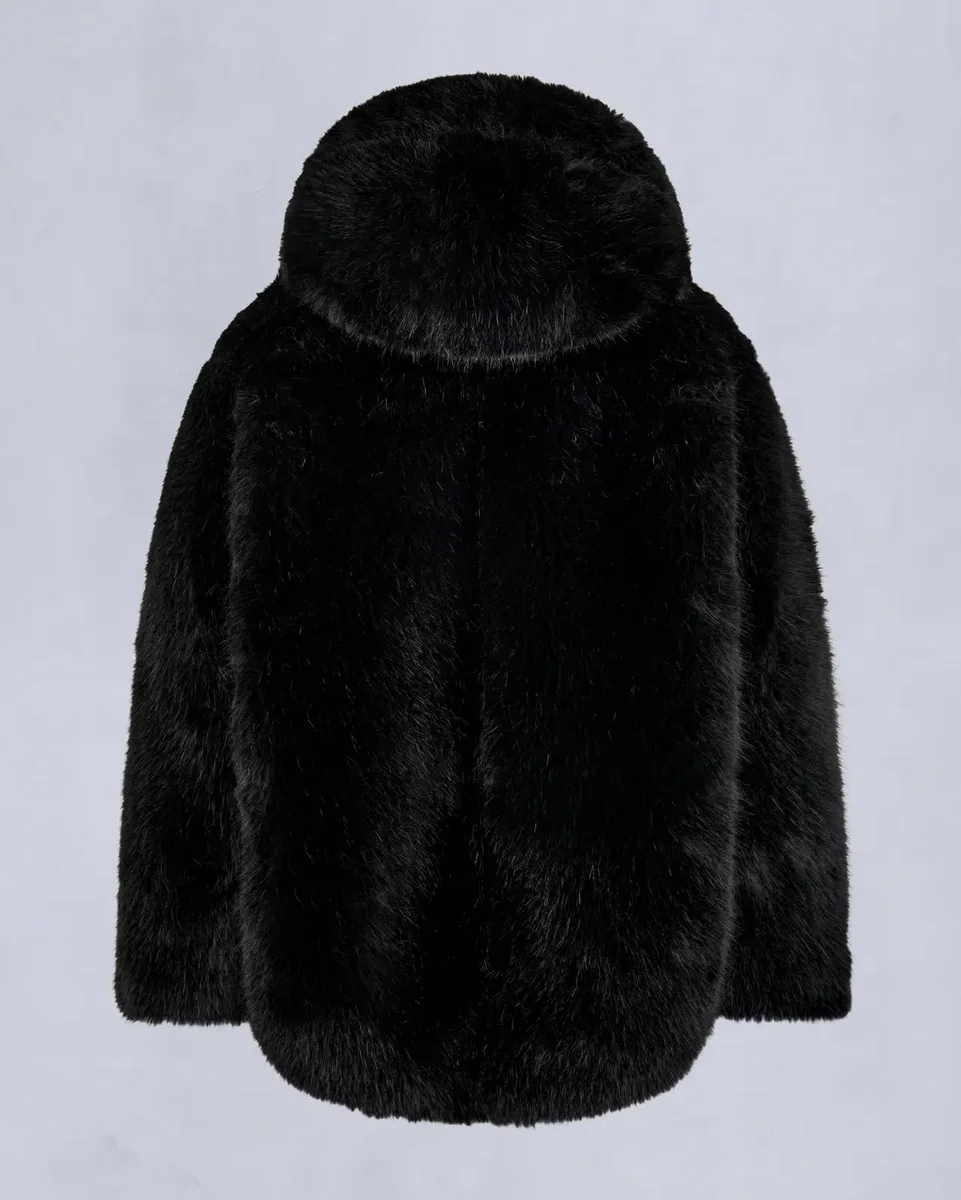- Cappuccio integrato, pompon in pelliccia sintetica a pelo lungo rimovibili