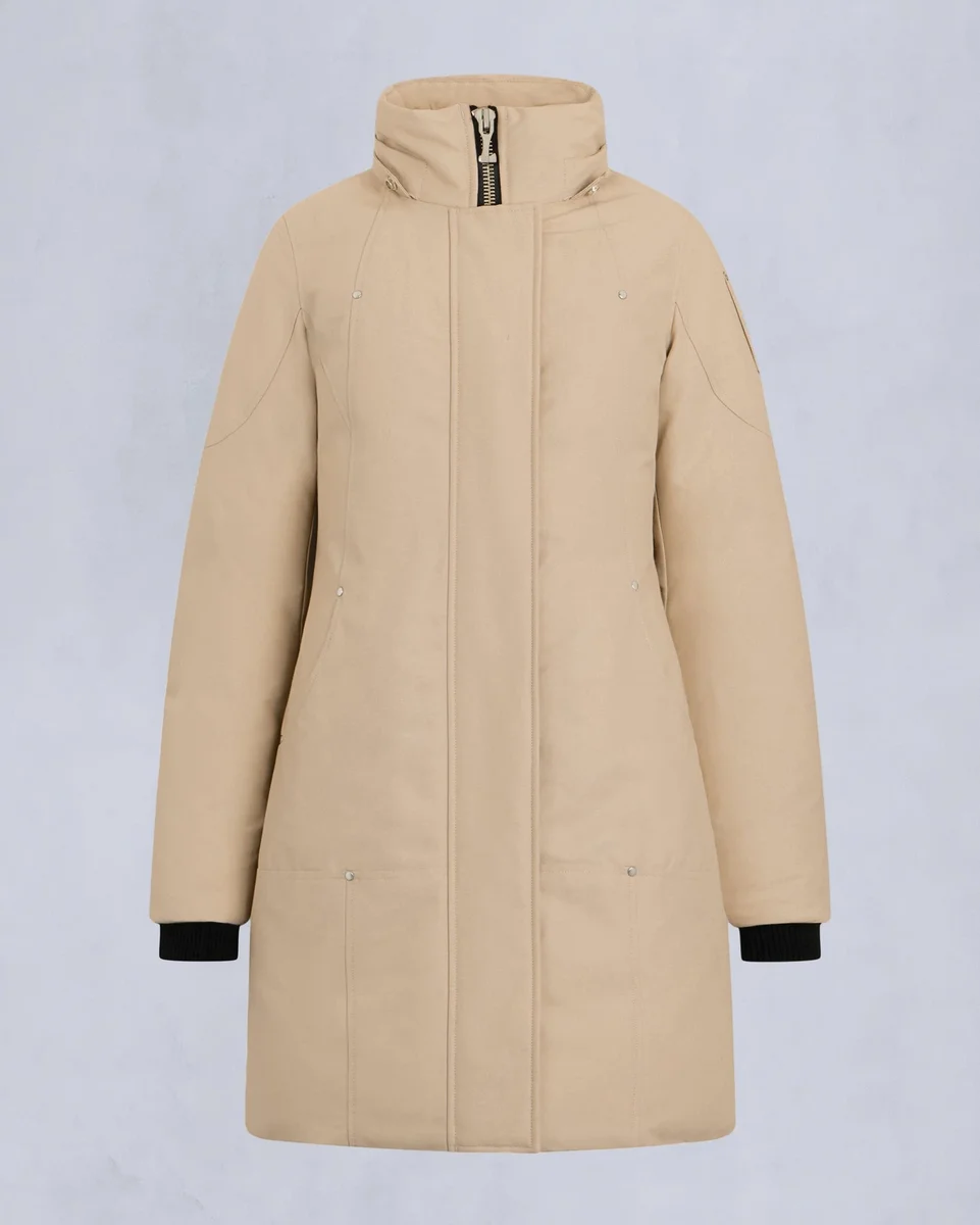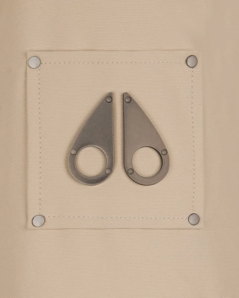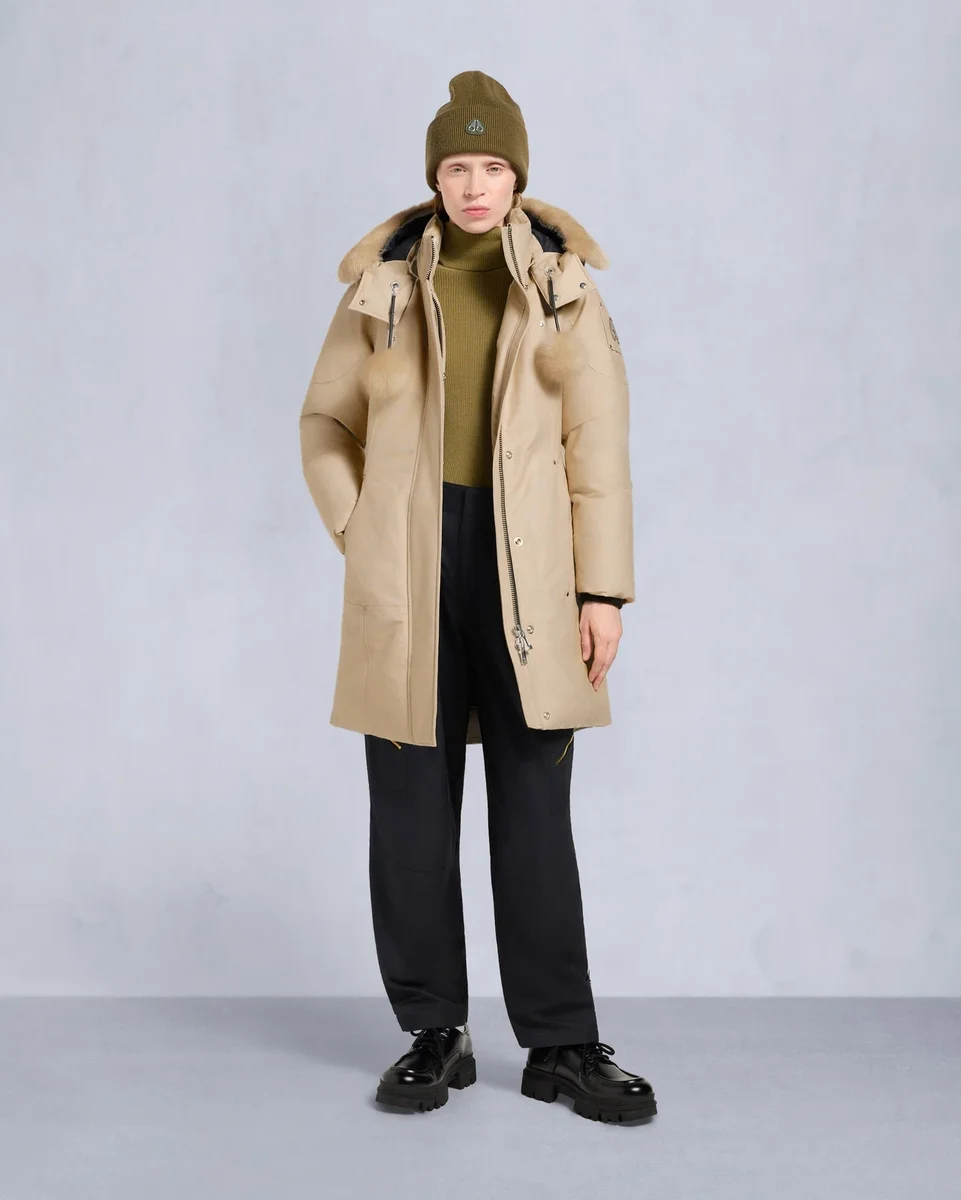 - Cappuccio rimovibile con bordo in shearling e pompon rimovibili