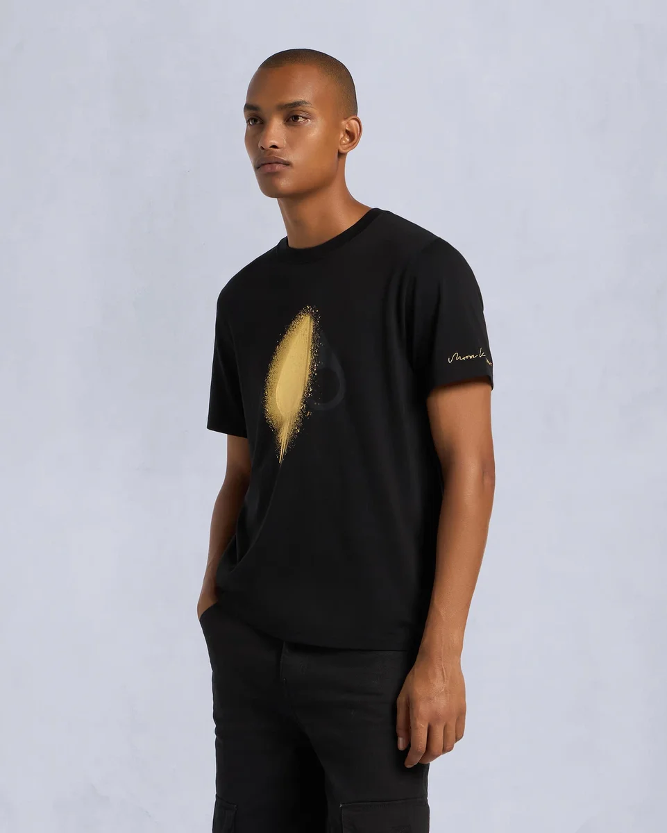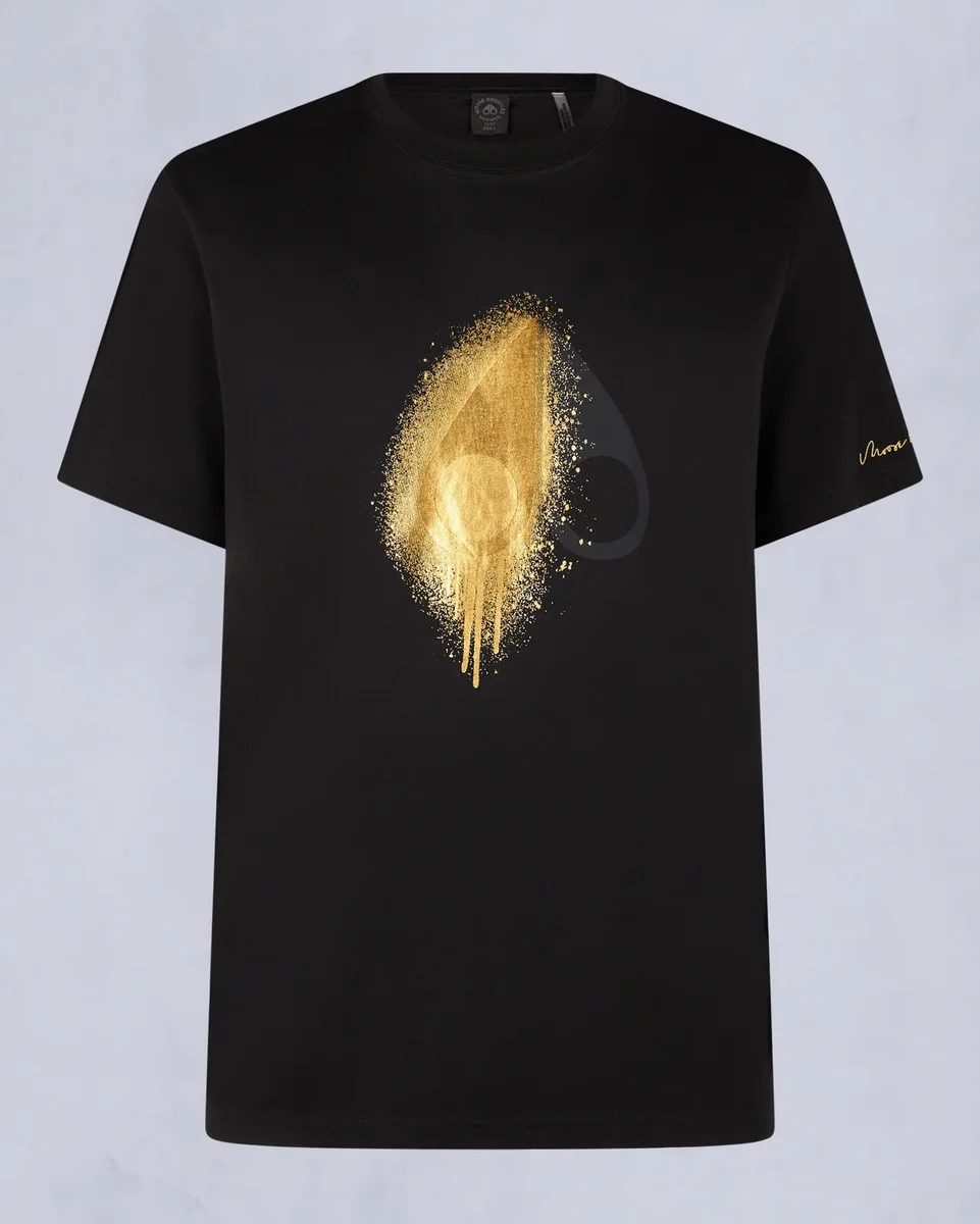 - Logo dorato spray sul petto e scritta Moose Knuckles dorata sull’orlo della manica
